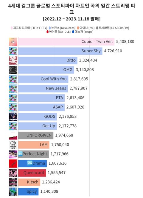 쉽게 정리해서 뉴진스 아이브 차이가 아이브 다른그룹 차이보다 훨씬 더 많이남. 아이브는 오히려 다른그룹한테 밀리는 지표도 많음. 당장 작년에 뉴진스가 22년 4개월 남기고 데뷔한건데 데뷔 빨리했으면 결과 뻔했음. 누가봐도 모든지표에서 뉴진스 압승인데 자꾸 투탑인척 은근슬쩍 물타기하는거 웃기긴함.