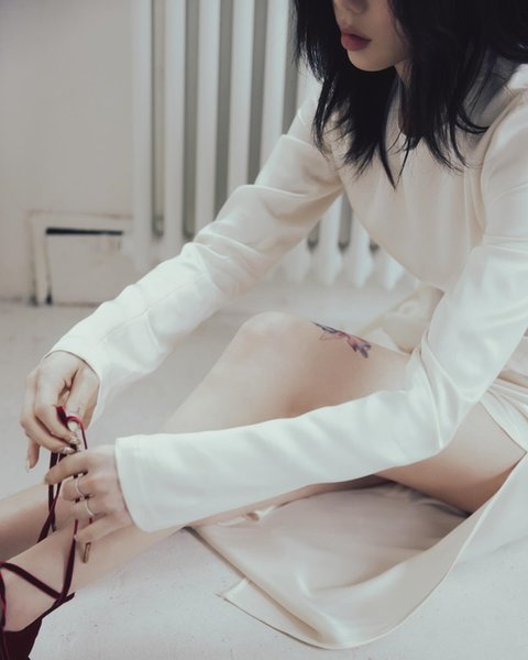 태연은 다리에 뭔가 이질적이게 느껴지는 큰 타투가 있음