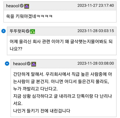 2. 하기 싫거나 이번 사태에 대해서 뭔가 찔리는거 있는사람은 퇴사하겠다고 톡 남기고 출근하지 말라고 했음.