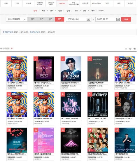 * 2023은 집계중으로 앞으로 남은 공연(성시경)은 변동가능하고 이미 지난공연은 확정