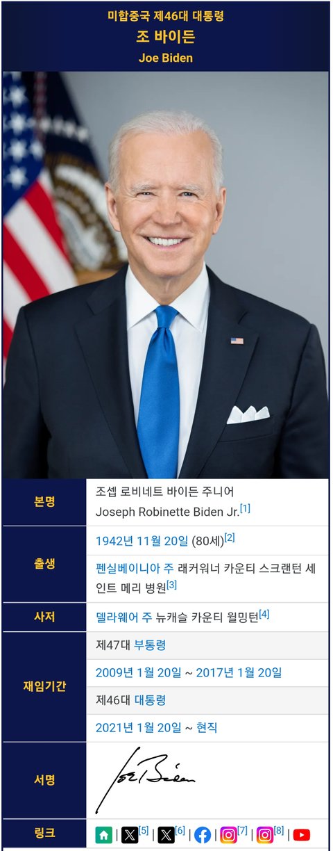 (사진4 설명) 조셉 로비네트 바이든 주니어(Joseph Robinette Biden Jr) 미국 대통령 <출처 : 네이버 나무위키>