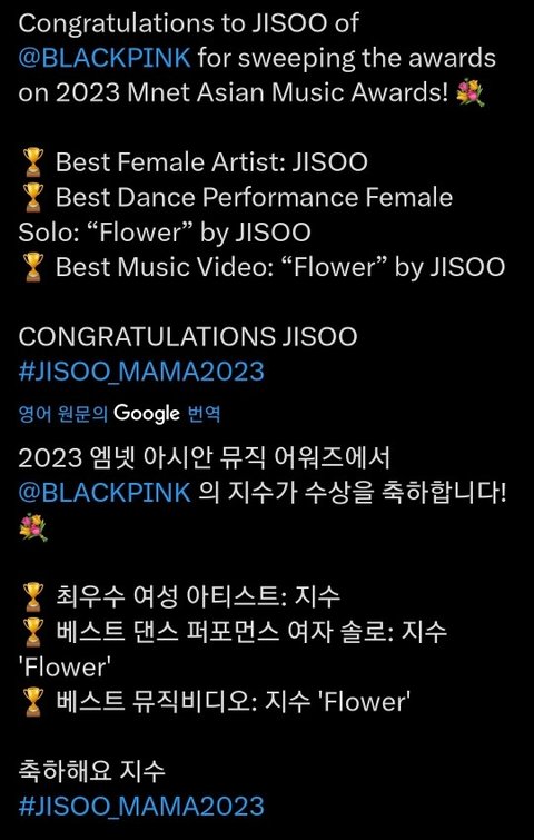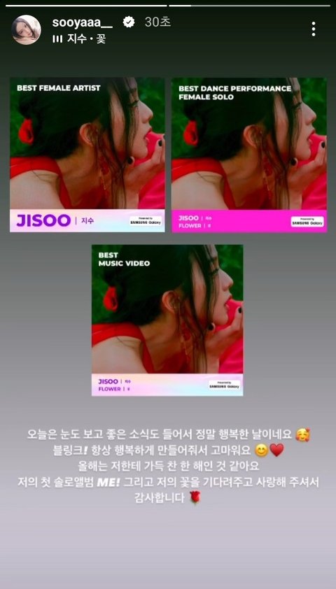 지수 인스스 마마 3관왕 ㅊㅊ
