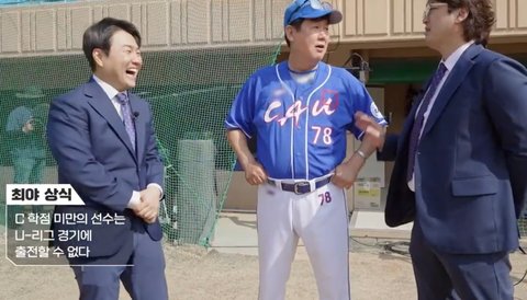 중앙대와의 경기를 앞두고 있는 <최강야구>