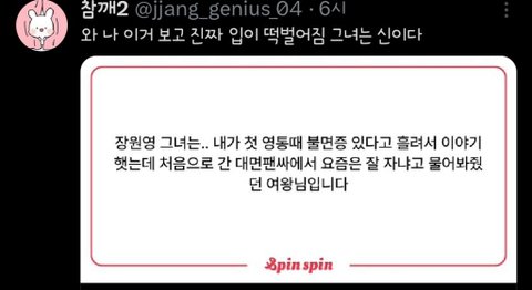 장원영이 여신이 맞긴 한데 너무 주작 스럽게 띄우는 것도 좀 그렇다.. 그냥 둬도 여신이야 뭔 1년전껄 기억한다니...