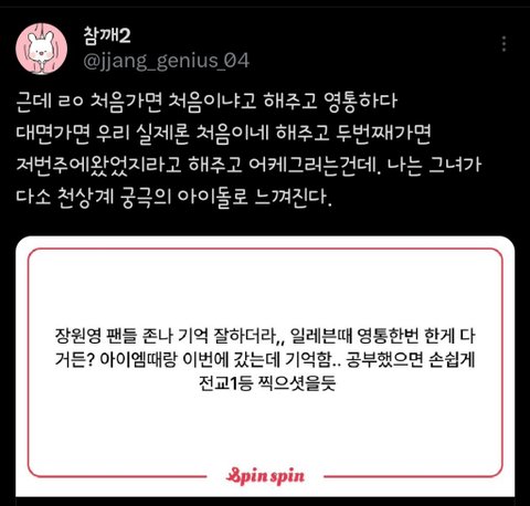 근데 이런거 보면 혹여나 기억 못한다고 실망 안했으면 좋겠음 장원영도 노력 하는거니깐..