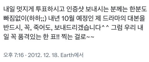 김은숙 작가가 12월 대선투표 인증샷을 보내주신 분들에게