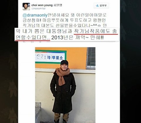 지난 12월 대선 당시, 김은숙 작가는 ‘투표 인증샷을 보내면 차기작의 1회 대본을 주겠다’라는 메시지를 트위터의 게재했고, 이에 1500명에 달하는 사람들이 인증샷을 보냈다.