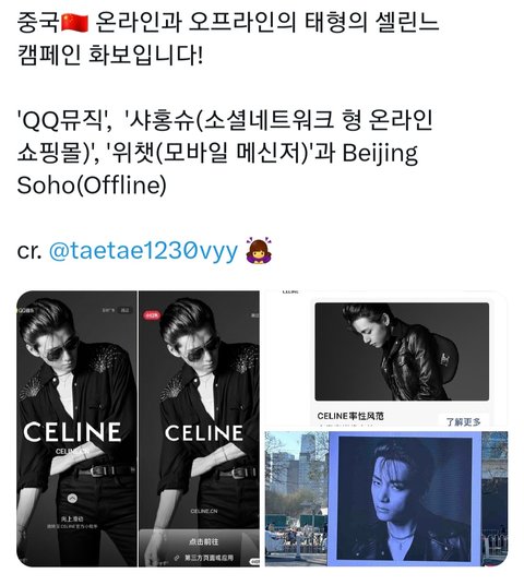 방탄 뷔 중국에서 셀린느 캠페인 시작