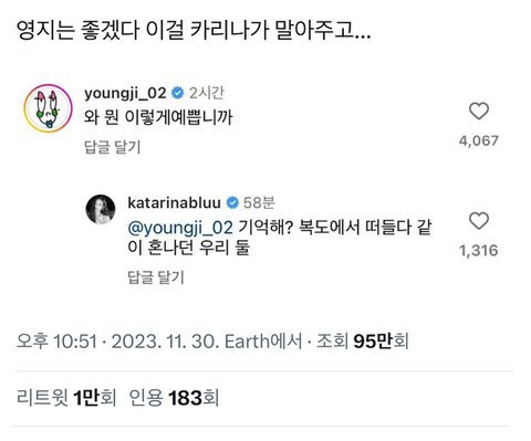 1만 알티 탄 에스파 카리나 인스타 댓글