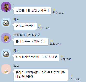 아니 근데 플레이브 그거 버츄얼이라매 걔네들이 받을만한 자격이되나??? 솔직히 가수가 직접 무대하는게 정상이지 버추얼 씌워서 화면으로만 보는게 무슨 아티스트야 하다못해 K/DA 도 실제 노래부른 가수들이 무대하는데 애초에 무대도 안서는 애들이 신인상 받는건 솔직히 무대위에 서려고 빡쎄게 노력하고 홍보하고 준비하는 다른 많은 가수들한테 실례고 민폐라 생각함. 실제 노래부르는 사람이 사람이면 뭐하냐구. 얼굴없는 가수라고 김범수도 오로지 음악으로만 대중들한테 이름알렸지만 나중에 다 무대했음. 직접 무대하고 무대하려고 구성준비하는 다른가수들 냅두고 버추얼 뒤집어쓰고 화면만 나오는 캐릭터긴 신인상 받는게 맞나 싶은데.