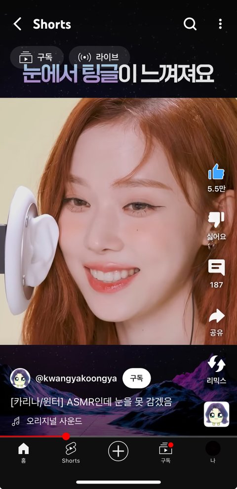카리나랑 asmr하는거 보는데 진짜 조카 이쁘다 윈터는 역시 장발에 봄웜이야… 현존하는 여돌중 가장 예쁜듯 발캡인데도 진짜 예뿌네