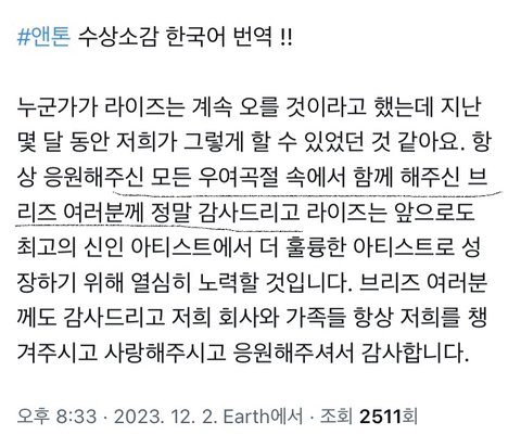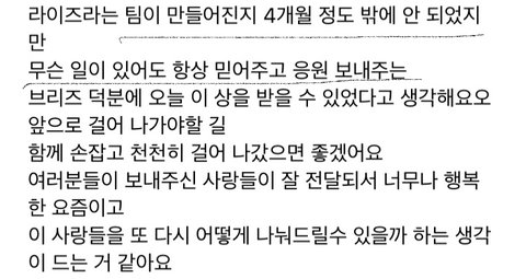 진짜 영상보면 신인상 못받을거라 생각했던거 같음ㅜㅜㅜㅠㅠㅠㅠ진짜 받을만 했고 자격있다 너네!! ㅜㅠㅠ연습생활부터 진짜 라이즈가 얼마나 고생한지 아니까 우리도 울컥했음 그것도 모르면서 에셈이니까 받은거지 이러면서 평균5년 연습생생활한 사람들을 한순간의 개꿀인생으로 만들어버리는 ^^... ㅆㄹㄱ들이 너무 많음