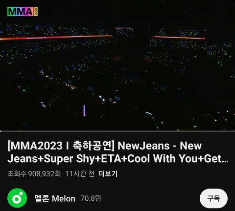 2위 뉴진스 90.8만회 (음향 송출 수정으로 늦게 올라왔다함)