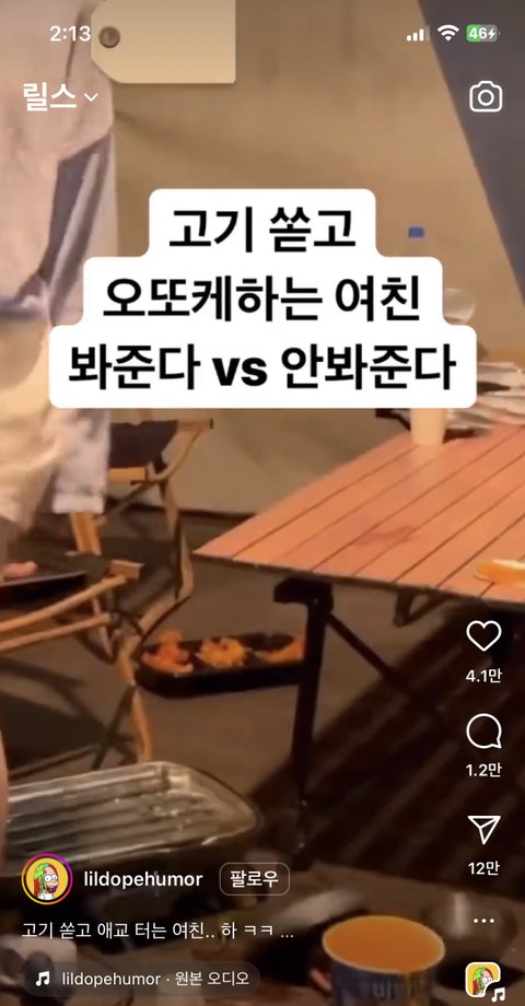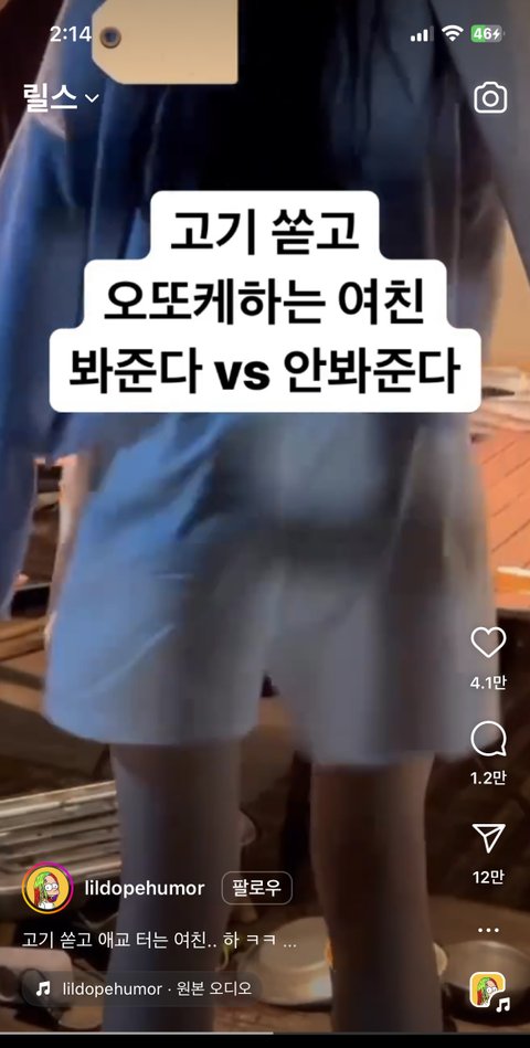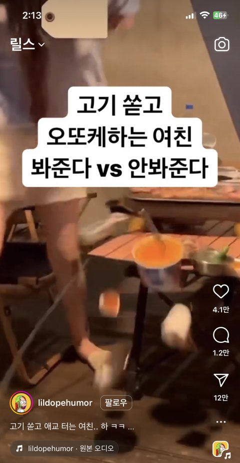릴스 고기 쏟고 어딱해하는 영상 본 사람