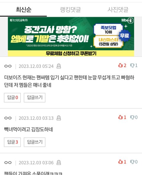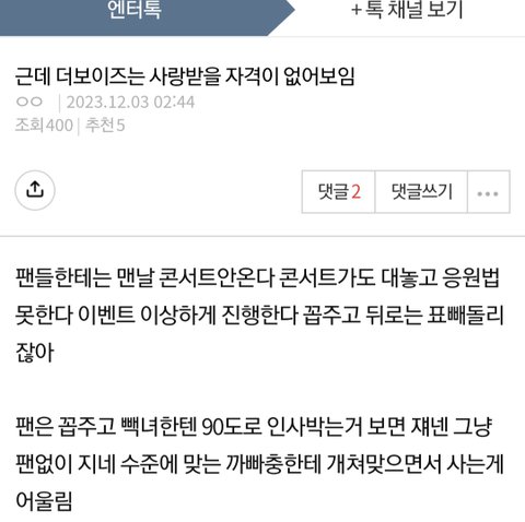 다른 팬덤처럼 부둥부둥은 아니더라도 이정도로 욕 먹어야 될 정도임?