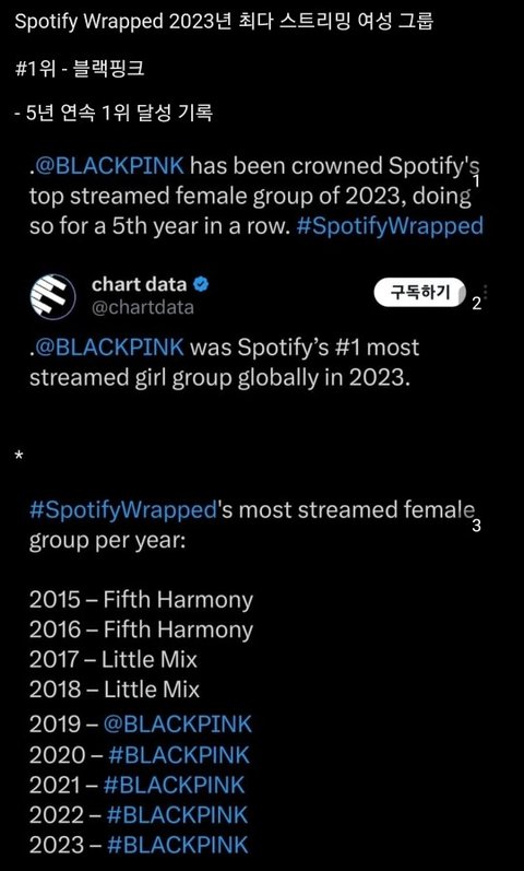 그냥 블랙핑크는 역대 전세계 올타임 레전드 걸그룹인데 베댓은 그런 블핑을 국내 걸그룹이랑 비교하고 있는 게 웃김ㅋㅋㅋㅋㅋㅋㅋㅋ 전세계 걸그룹 레전드 스파이스걸스 데스티니차일드랑 비교되는 수준인데ㅋㅋㅋㅋㅋㅋ 전세계 걸그룹 음원 누적 스트리밍 수치 1위도 블핑이고 투어 기록도 전세계 걸그룹 아시아 가수 1위에 유튜브는 말할 필요도 없이 원탑인데... 음반도 걸그룹 최초 밀리언 더블밀리언 시대 연게 블핑이야