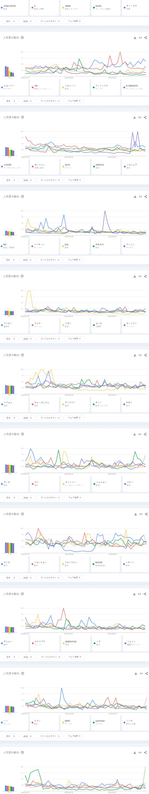 2023년 일본 구글에서 가장 많이 검색된 케이팝 남자아이돌그룹 멤버 TOP50
