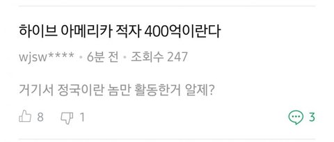 정국인 마니받았는데 지민이 못받아서 밀리언스탑텐이라도 받을수있었는데 저러는거아님? 음정팀싸불 아직도 하던데 지민이도 곧 나올텐데 왜그런거지 도움 안받고싶은가