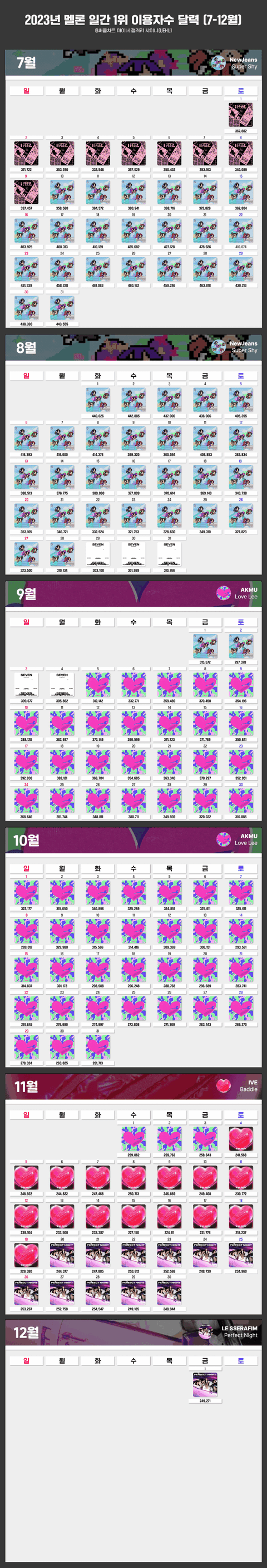 11월 20일 ~ 12월 1일 르세라핌 Perfect Night 12일 (~유지중)