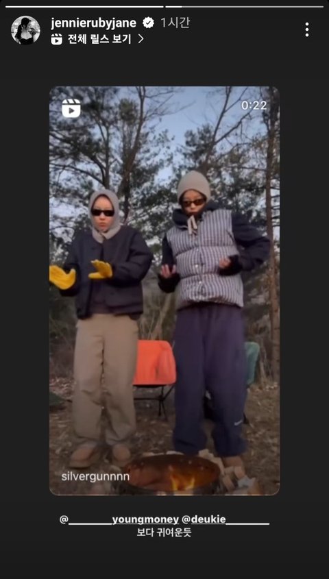 캠핑 가서 챌린지 찍은듯 왼쪽엔 제니랑 친한 여자댄서분ㅋㅋㅋㅋㅋㅋ