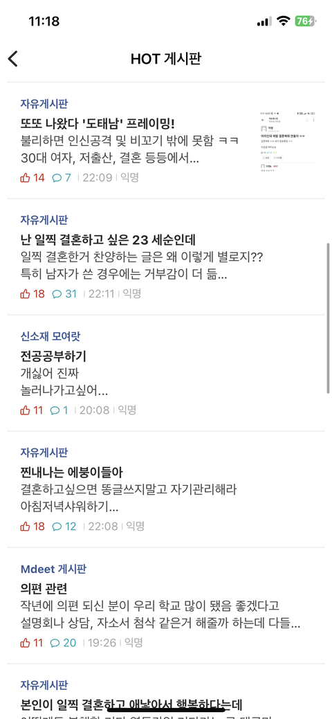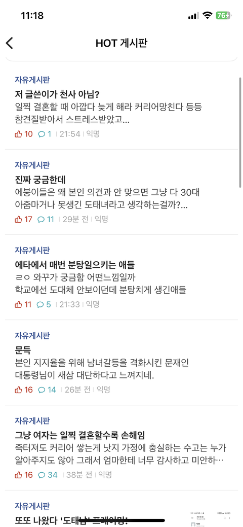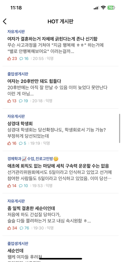 방금 오늘 하루 연대 에타 핫게 긁어온거임