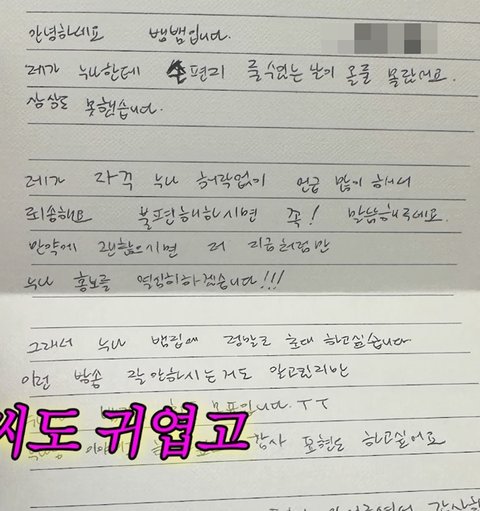 제가 누나한테 손 편지 줄 수 있는 날이 올 줄 몰랐어요.