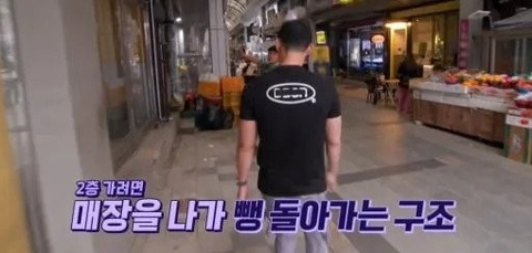 2층 가려면 쟁반 들고 밖으로 나와서 걸어가야함