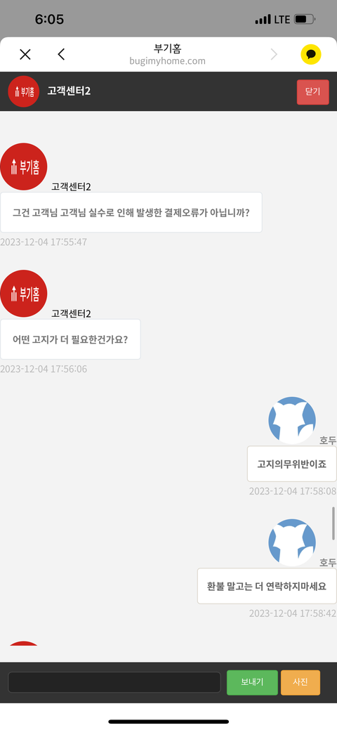 이건 사칭채널에서 보내준 링크 고객센터에서 채팅한 내용입니다