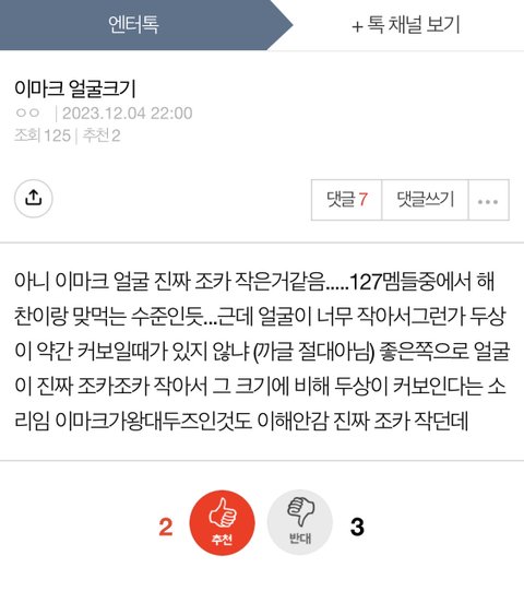 자기최애 머리얼굴작다고 어필할려고 가만있던애 두상큰사람 만듦;;이래놓고 댓글로지들끼리 해찬얼굴ㅈㄴ작더라 ㅇㅈㄹ하면서 맞장구치고 개환장..
