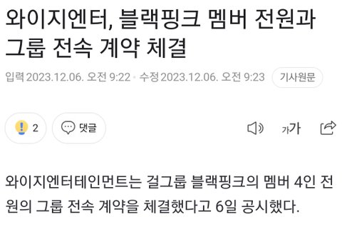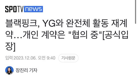 이럴줄 알았음 ㅇㅇ 블핑 정병들 재계약 안할거다 곧 해체할거다 ㅇㅈㄹ하더니 역시 바로 '4명 전원 제계약' ㅋㅋㅋㅋㅋㅋ 블핑 사랑해