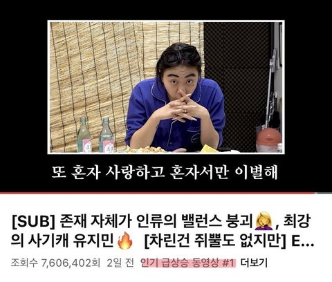 여기 들었을때도 놀랐는데 인기동영상 1위까지 했네
