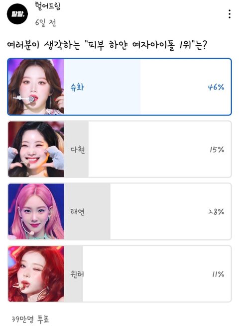아이들 슈화가 피부 하얀 여돌 투표 1위네