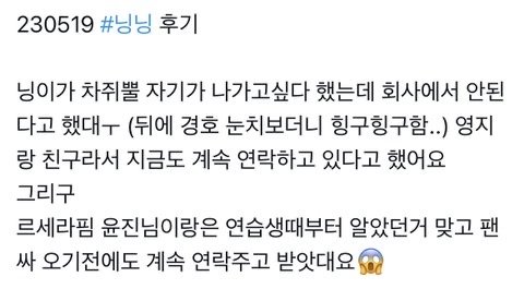 못나가게하고 타멤 내보냈는데 이거 팬들사이에서 말 안나옴..? 아 좀 너무한데.. 닝닝팬들 좀 서운했겠다... (ㅋㄹㄴ까는거 아니야ㅠㅠ 혹시나 어그로 끌릴까봐)