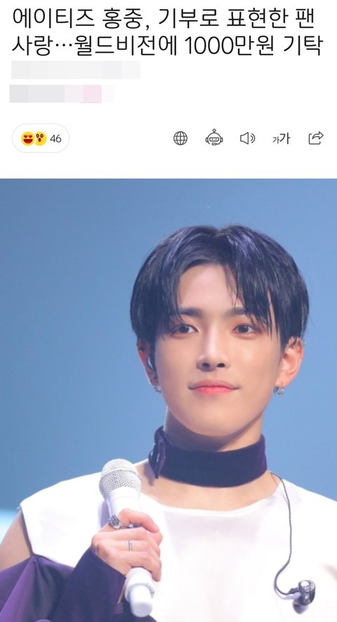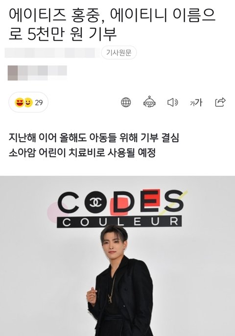 팬들한테 영감 받고 홍중+에이티니로 기부한 거 멋져