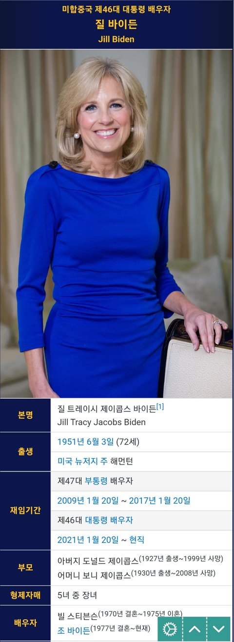 (사진3 설명) 영부인 질 바이든(Jill Biden) 여사 <출처 : 네이버 나무위키>