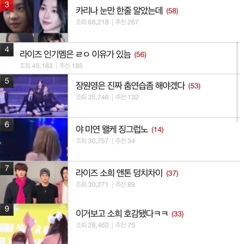 카리나 장원영 미연 리즈 예쁜여돌들 싹다 줘패는 글 + 소희 귀엽다 호감이다 빨아주는 글 동시에 떠있음!! 방탄 블핑 엔시티 투바투 세븐틴 아이브 에스파 뉴진스 르세라핌 아이들 더보이즈 엔하이픈