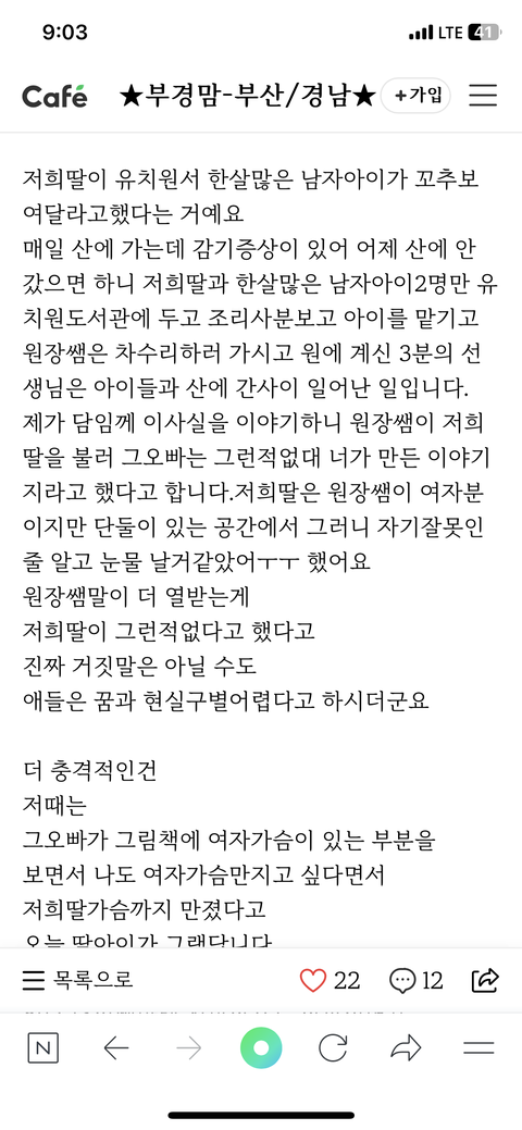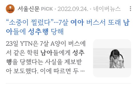유치원 성범죄 성추행 찾아보면 같은 또래 남자애가 여자애를 추행했다는 글 정말 쉽게 찾아볼 수 있고요.