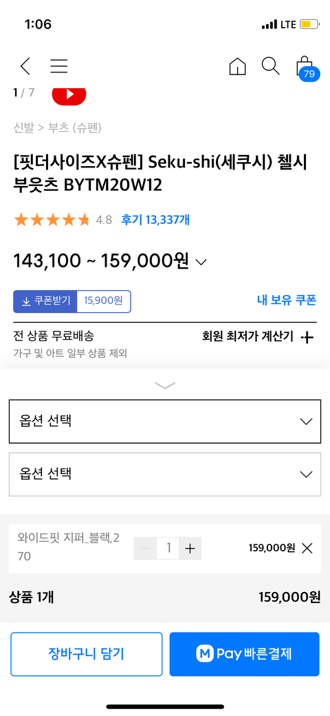 슈펜X핏더사이즈 콜라보 첼시부츠를 구매했습니다. (원가 159,000 블프 특가 89,000)