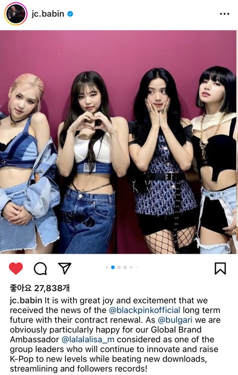 블랙핑크 완전체 재계약 소식 후 불가리 ceo 인별