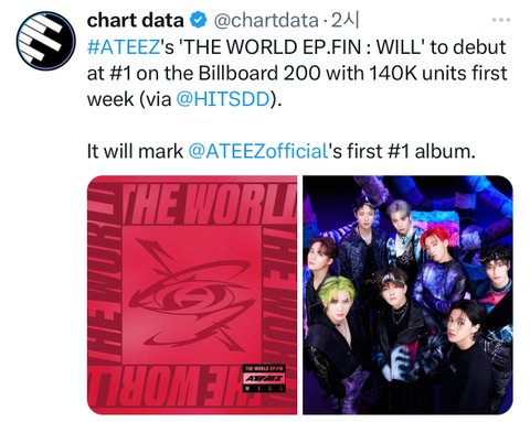 에이티즈 빌보드200 1위, 영국 오피셜앨범차트 2위래