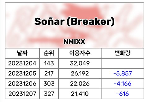 엔믹스 선공개곡 멜론 일간 순위 추이