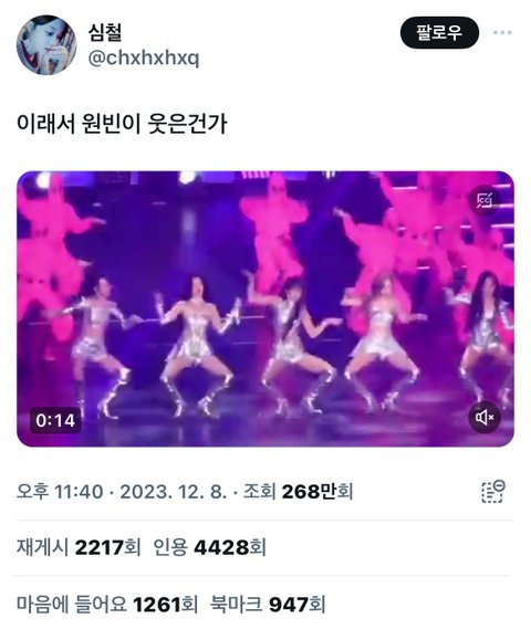 이래서 원빈이 웃은건가 ㅇㅈㄹ 에휴 쟤네 팬덤은 여돌 몇명을 패는거냐