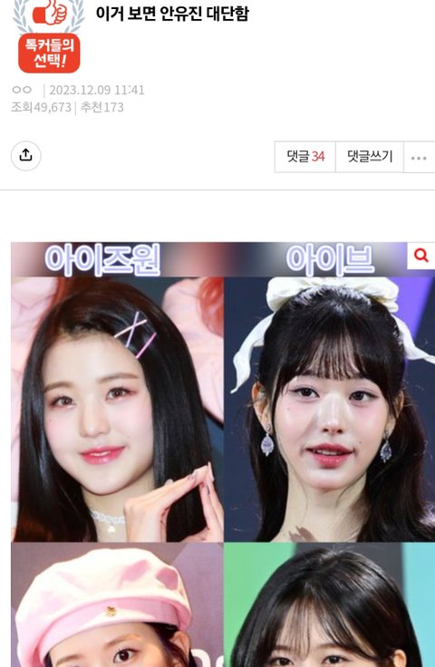 성형전 이지랄ㅋㅋㅋㅋㅋ장원영 그대론데 또 열폭한다