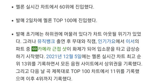 차트 상위권 진입한거 모르는 사람 많더라...