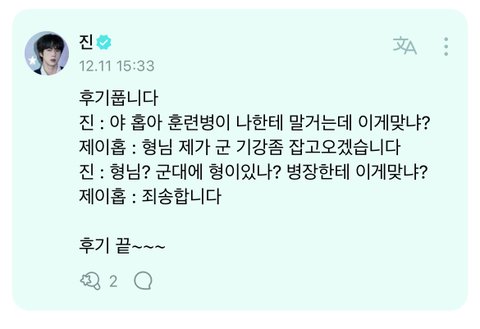 여기서 훈련병: 알엠 ,뷔 병장:석진