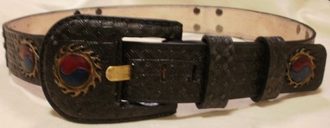 가죽에 태극 디자인을 카빙하고 스탬핑하여 제작한 천연 가죽 벨트입니다.(마디샤가죽공예