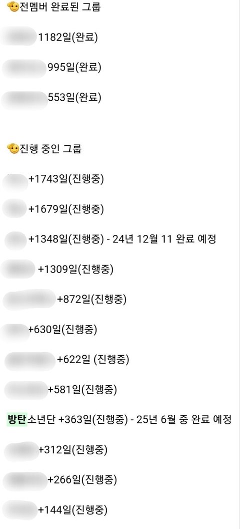 군백기가 총 921일인데 전원 동반입대하신 ㅇㅇㅇㅍ님들이랑(553일) 비교해도 겨우 1년 차이밖에 안 됨 근데 사실 찐군백기는 반년만 버티면 되니까 군백기 그뭔씹 다 이겨낼 수 있어ㅋㅋㅋㅋㅋ