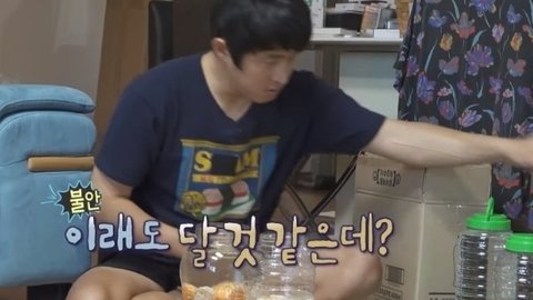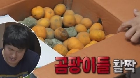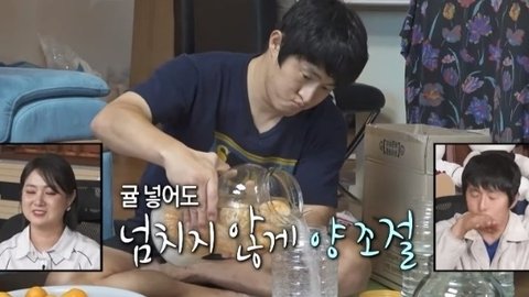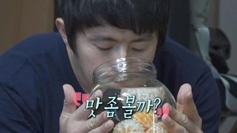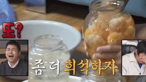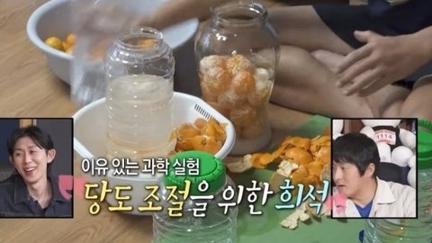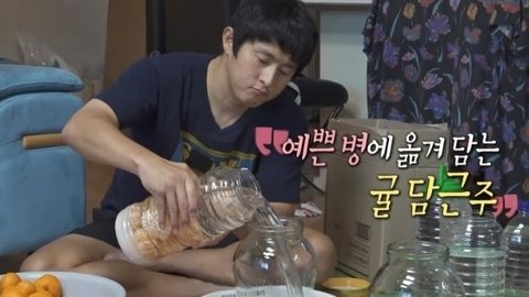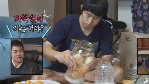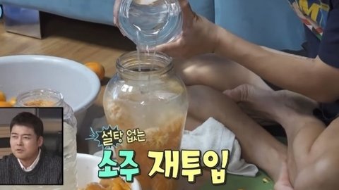 플라스틱 통에 소주랑 설탕 귤 대충 플라스틱 통에 섞어놓고
