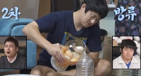 갑자기 물이 너무 많다며 다시 옮김