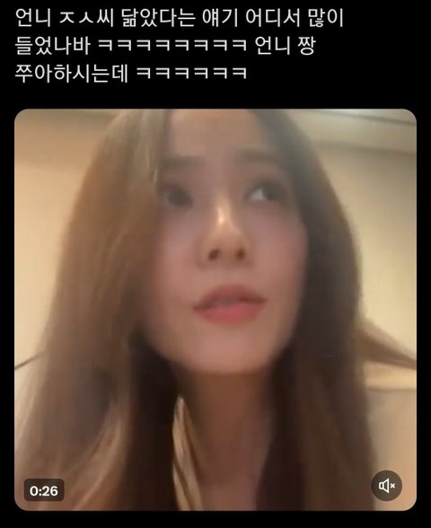 어제 라방에서 팬이 지수랑 닮았다고 하니까 자기도 그 소리 많이 들었다면서 나야 고맙지 땡큐 그럼ㅋㅋㅋㅋㅋ